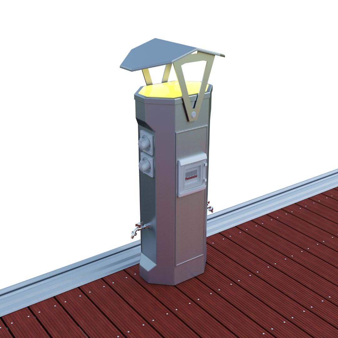 Все понтоны и причальные пальцы оснащаются швартовыми устройствами (утки, кнехты) с возможностью их бесшаговой установки,