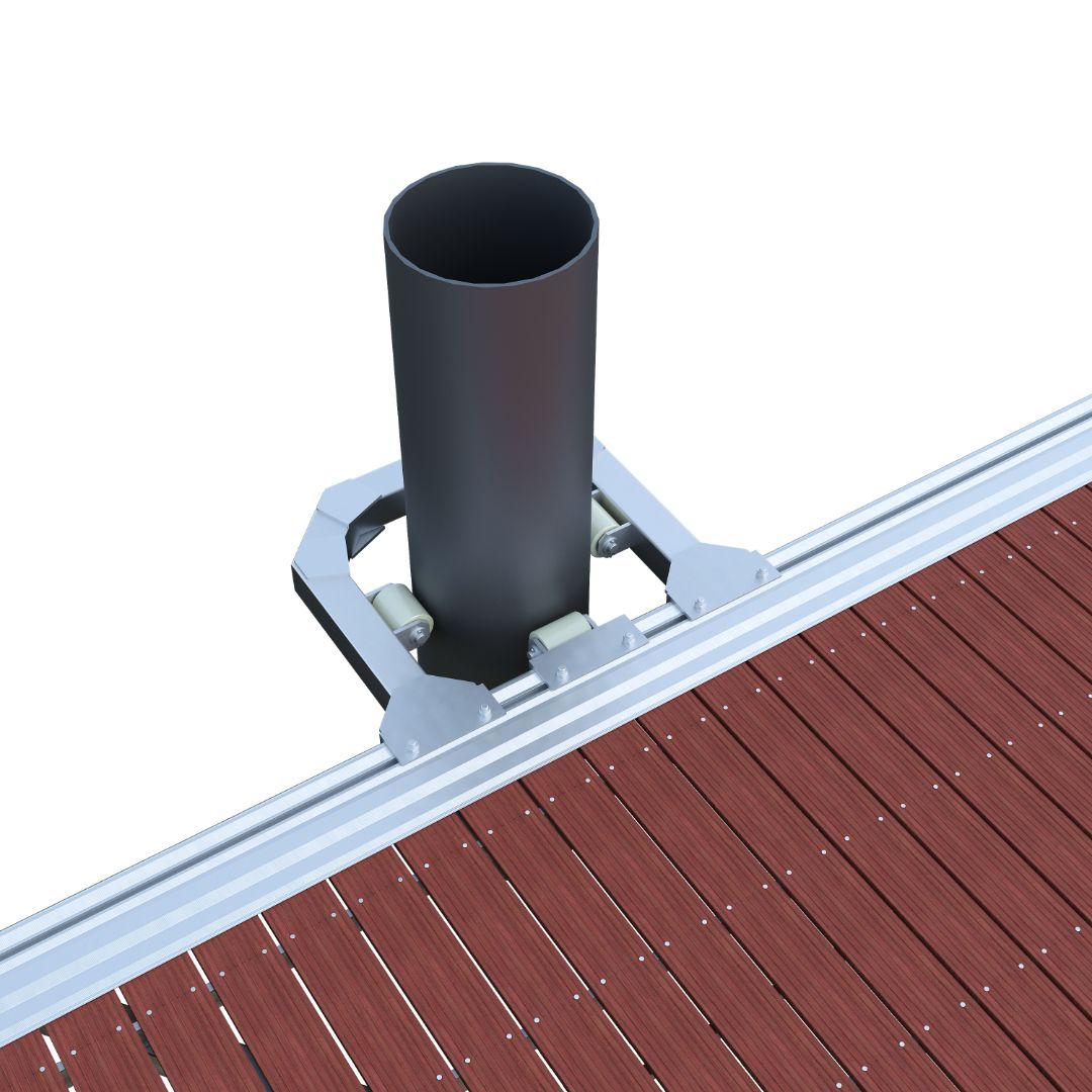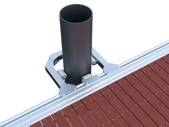 Система крепления поплавков к раме понтона также бесшаговая, что позволяет легко компенсировать точечные нагрузки на понтон в местах опирания трапов, причальных пальцев и другого оборудования путём изменения мест установки поплавков или установки дополнительных поплавков в особо нагруженных местах.