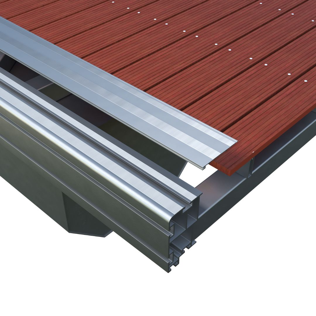 соединений при этом практически не заметны. Расстояние между досками настила на протяжении всей причальной нитки понтонов остаётся неизменными.