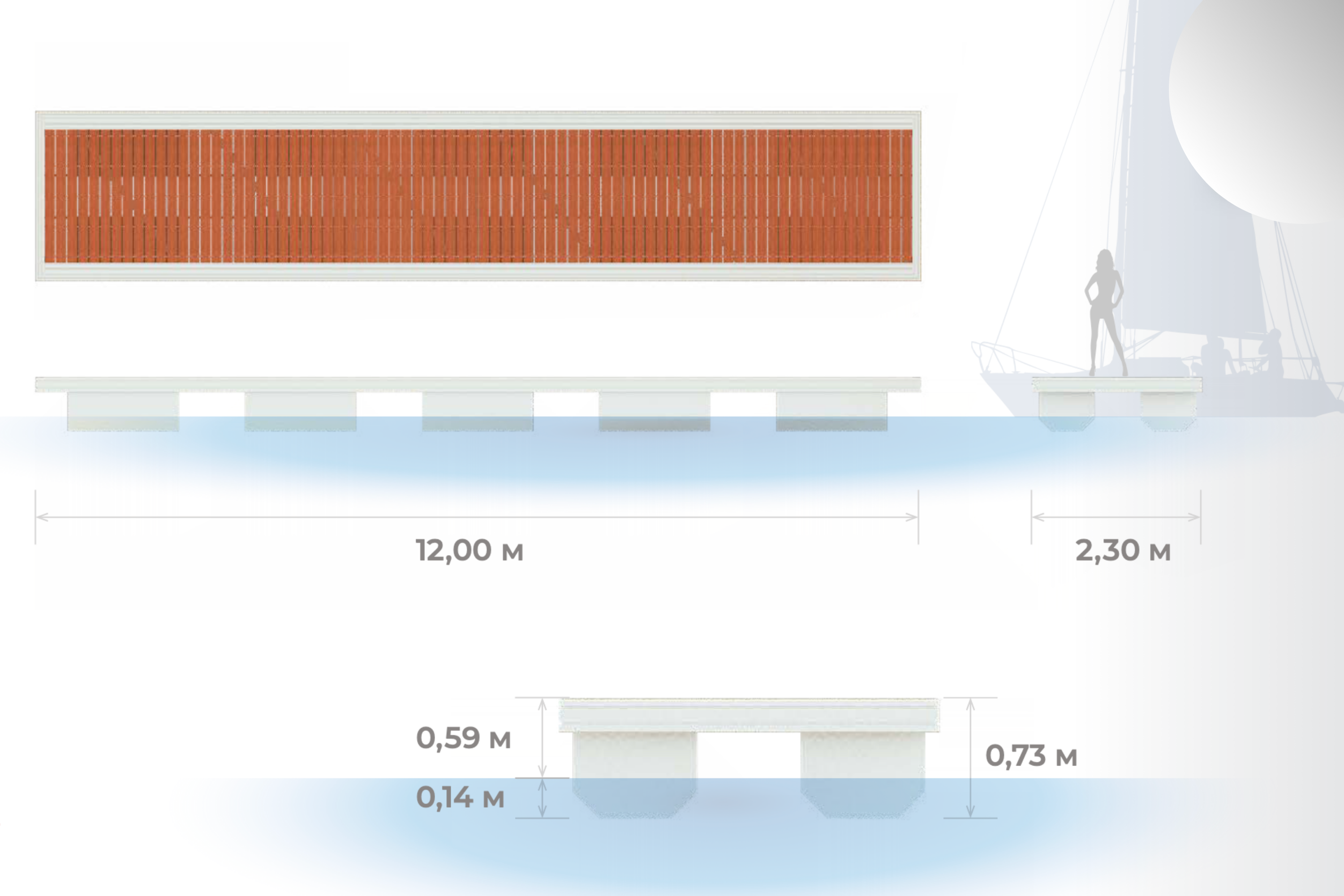 Низкобортные понтоны для гребных видов спорта и для детского парусного спорта.