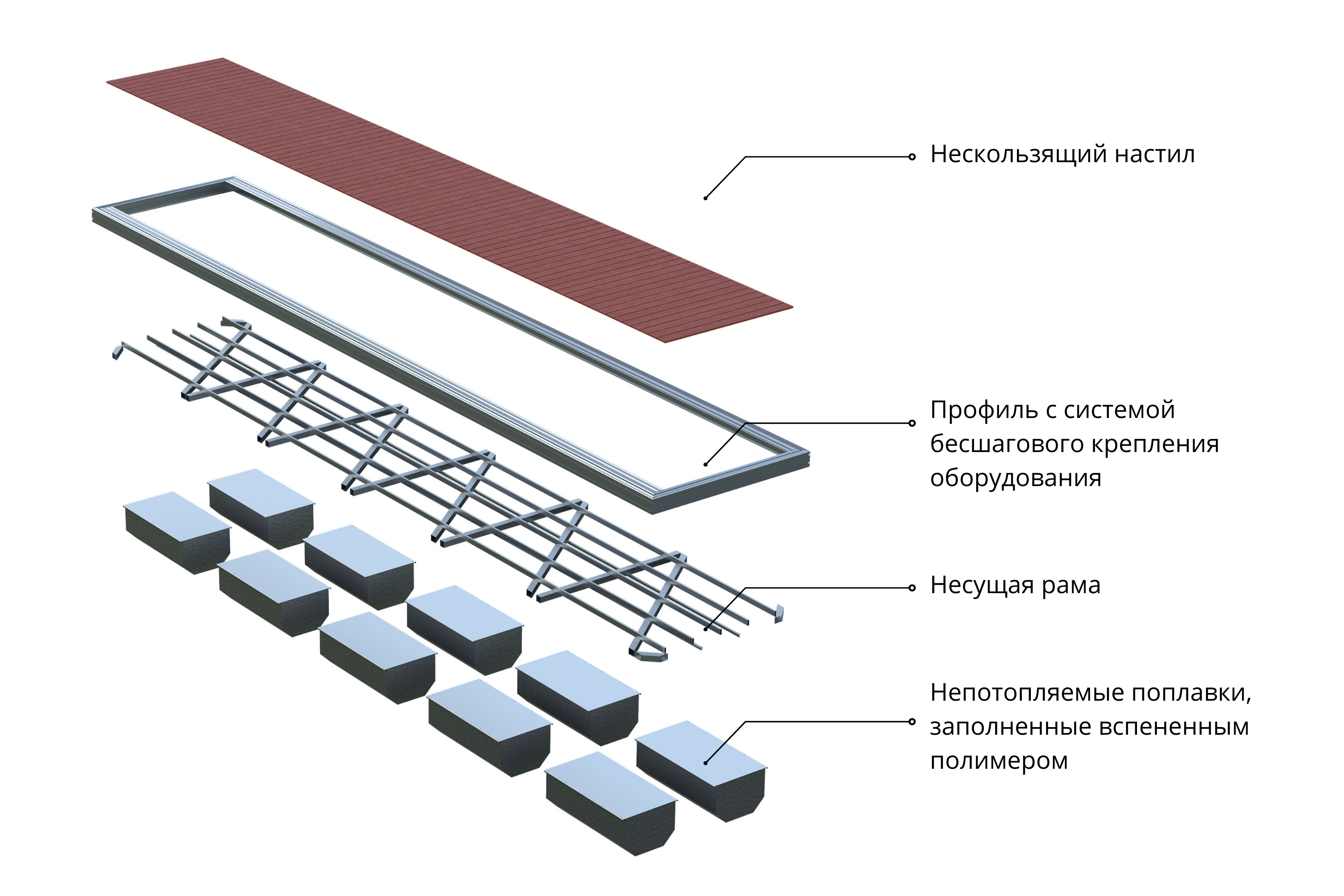- Профилированный алюминиевый настил.
